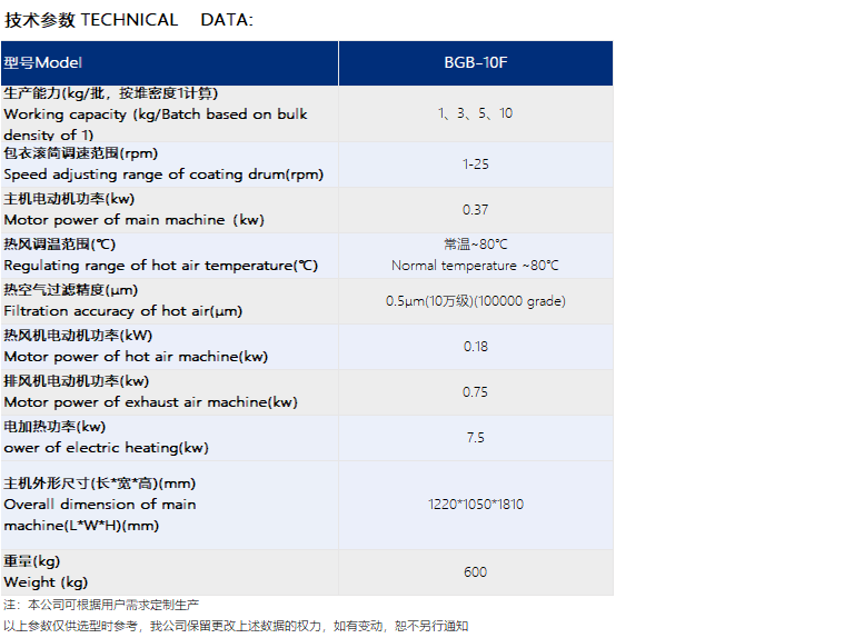 4.可以根据包衣工艺批量的多少更换适合的包衣机滚筒