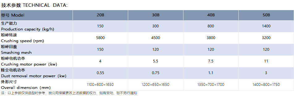 2.生产过程无粉尘飞扬,结构简单、坚固、运转平稳、易清洗、粉碎效果良好