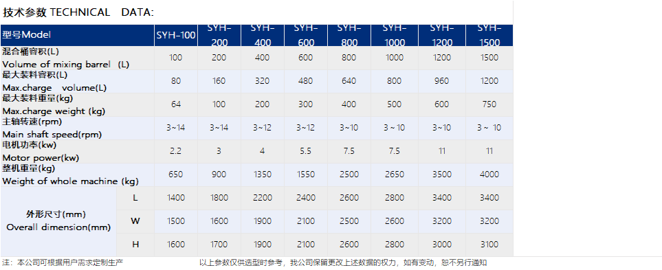 用途:SYH 系列三维运动混合机适用于制药、化工、电池、塑料、冶金、食品及科研单位行业中的物料高均匀度混合。