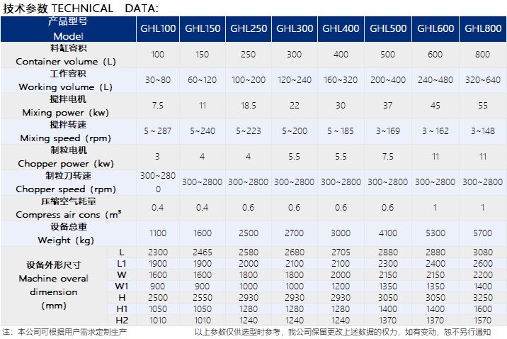 1.本机采用倒锥形制粒一体机技术,特殊的搅拌桨和切碎刀结构,保证制粒成品均匀,内壁转角光滑过渡,镜面抛光,不沾料,易清洗